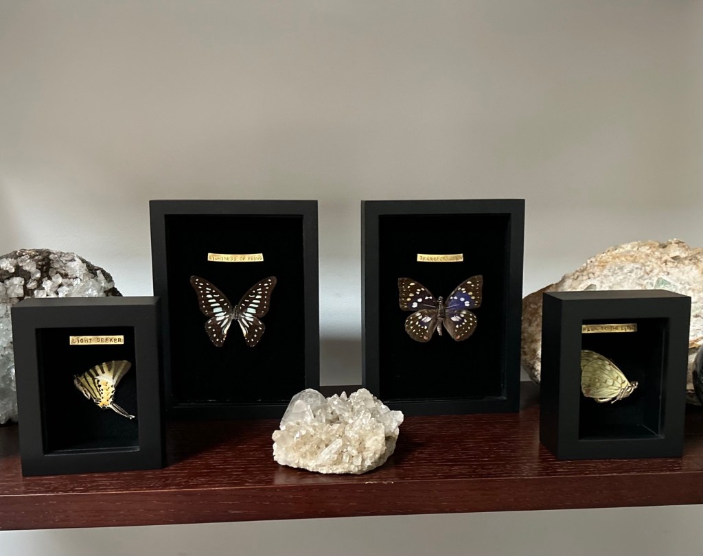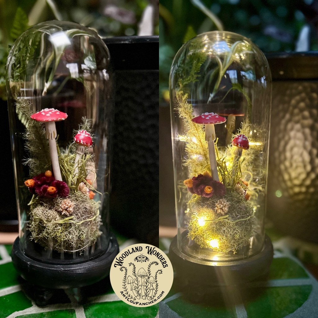 November 29, 2024 in Mushroom Terrariums | Tags: amanita muscaria mushrooms, butterfly shadowbox, butterfly specimen, fly agaric mushrooms, moss, mushroom cloche, Mushroom Terrariums, polymer clay mushrooms, toadstool mushrooms