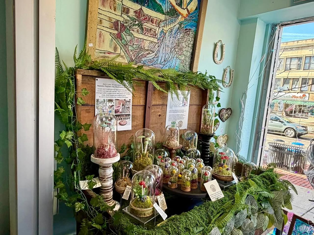The shop features handmade artisan items from local artists, fair trade items and antiques as well as holistic wellness products and crystals.