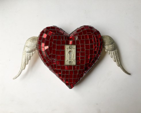 red heart with silver wings and keyhole