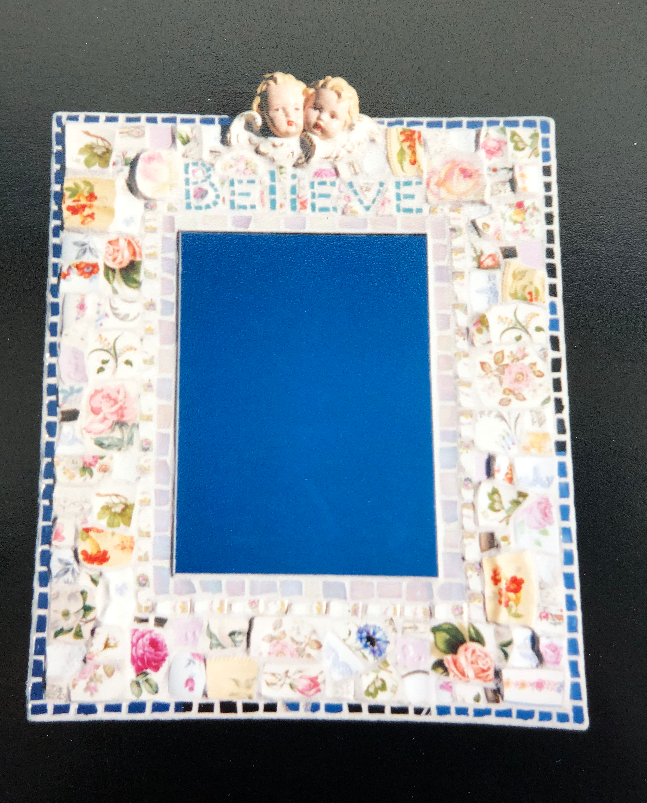 This mirror held a lot of meaning for me at the time. I felt vulnerable putting the word Believe together with the angels but it paid off. The person who bought it was a breast cancer survivor. We had the loveliest conversation and as a side note she is married to a famous singer/musician. It was a truly pivotal moment for me in my creative process of discovery.